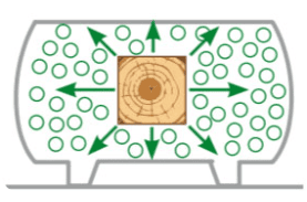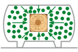 In questa fase viene eliminata tutta l'aria presente all'interno del legno per preparare il materiale ad assorbire in profondità i sali preservanti.